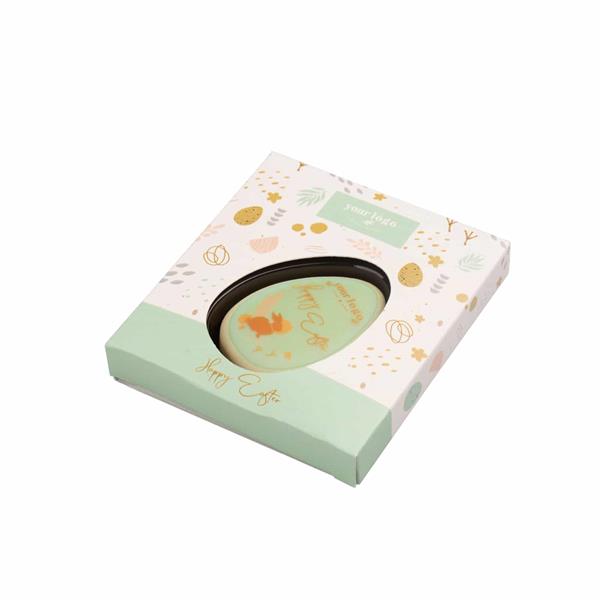 Wykorzystaj czekoladkę w kształcie jajka, całą z aksamitnej, białej czekolady, by stworzyć spersonalizowany firmowy słodki upominek. To świetny pomysł, by wprowadzić świeży, kreatywny akcent do strategii promocyjnej.