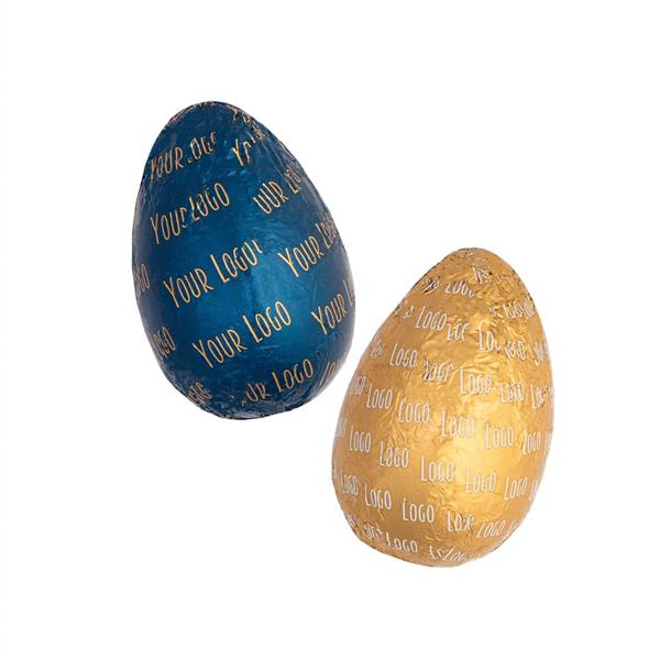 Każde jajo zapakowane jest w folię, zdobioną nadrukiem w postaci powtarzalnego wzoru. Na Twoje życzenie wyeksponujemy na opakowaniu logo marki.