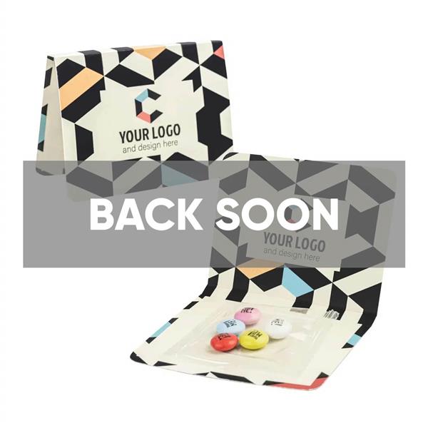 Poznaj karnet, który zaprojektowaliśmy tak, aby maksymalnie wykorzystać dostępną powierzchnię zadruku – właśnie dlatego spersonalizujesz go dwustronnie. W środku umieściliśmy saszetkę z czekoladowymi drażetkami w chrupiącej skorupce. Ten radosny miks kolorów zawdzięczamy tylko naturalnym barwnikom, a na każdej słodkiej drażetce, po obu jej stronach, umieścimy Twoje logo lub wybrany przez Ciebie znak.