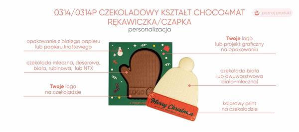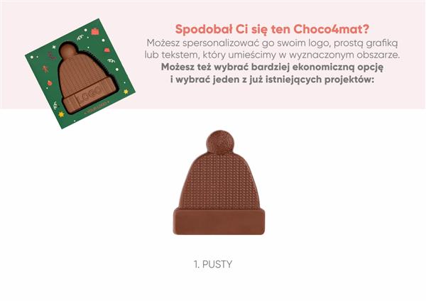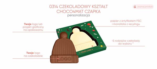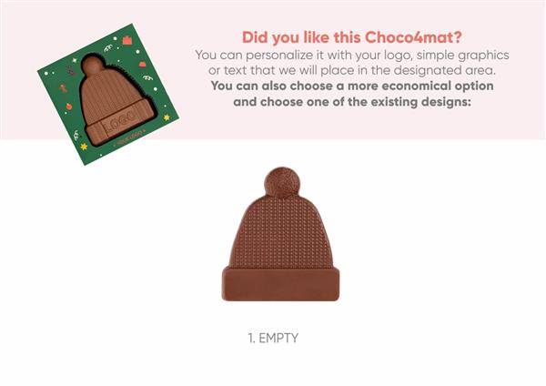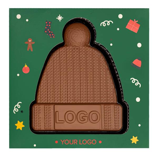 Czekoladowa czapka? Kto to słyszał! Jeśli jednak właśnie ona jest tym, czego szukasz jako dodatek do prezentu dla swoich pracowników, to informujemy – mamy ją! I to w wersji, którą możesz spersonalizować, zamieszczając Twoje logo i życzenia na czekoladzie i opakowaniu.