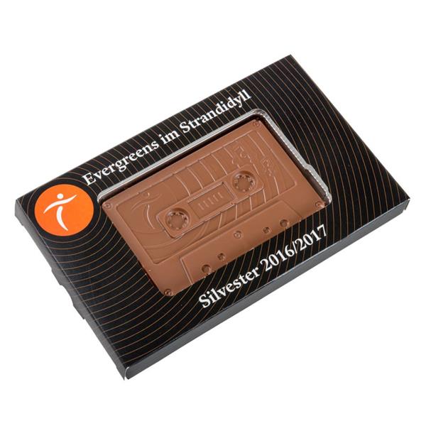 Czekolada kształtowa, umieszczona w wyprasce z R-PET (czyli PET pochodzący w 80% z recyklingu) zamknięta jest w opakowaniu z papieru z certyfikatem FSC (do wyboru kolor: biały, kraft lub ecru -papier z dodatkiem włókien trawy). Pudełko z okienkiem pozwala pięknie wyeksponować czekoladę.