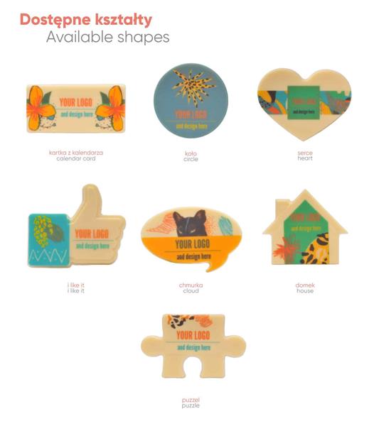 Choco4Mat Mini Print to wyjątkowe tabliczki białej czekolady w fantazyjnych kształtach z oryginalnymi zdobieniami. Dzięki elastycznemu podejściu do produkcji, możemy zrealizować nawet najbardziej nietypowe pomysły, jak na przykład czekoladę w formie chmurki z kolorową personalizacją na czekoladzie, idealną na przekazanie klientom i kontrahentom dobrych wieści – np. ukończenie z sukcesem ważnego projektu. To coś więcej niż czekoladka reklamowa, to nietuzinkowy i kreatywny gadżet promocyjny o jakości premium, który docenią Twoi klienci, kontrahenci i pracownicy.