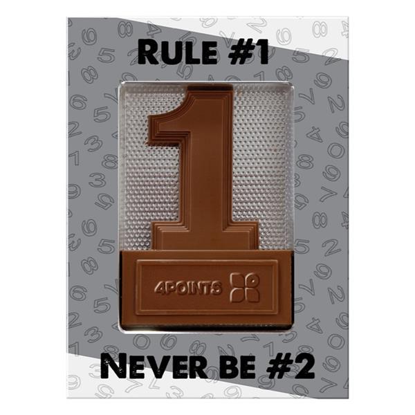 Czekolada kształtowa, umieszczona w wyprasce z R-PET (czyli PET pochodzący w 80% z recyklingu) zamknięta jest w opakowaniu z papieru z certyfikatem FSC (do wyboru kolor: biały, kraft lub ecru -papier z dodatkiem włókien trawy). Pudełko z okienkiem pozwala pięknie wyeksponować czekoladę.