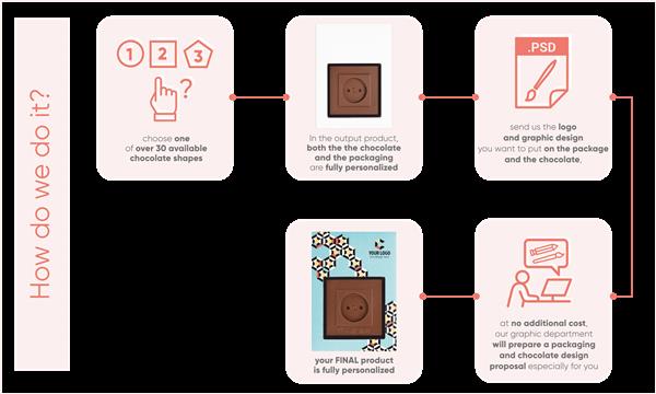 Kreatywne, świeże, wyjątkowe – oto Linia Choco4Mat, czyli tabliczki czekolady w wielu zaskakujących kształtach. Posiadamy ponad 32 gotowe formaty do wyboru, które tylko czekają aby spersonalizować je Twoim logo lub grafiką, lecz na Twoje życzenie stworzymy kolejne – zupełnie nowe i niekonwencjonalne kształty.