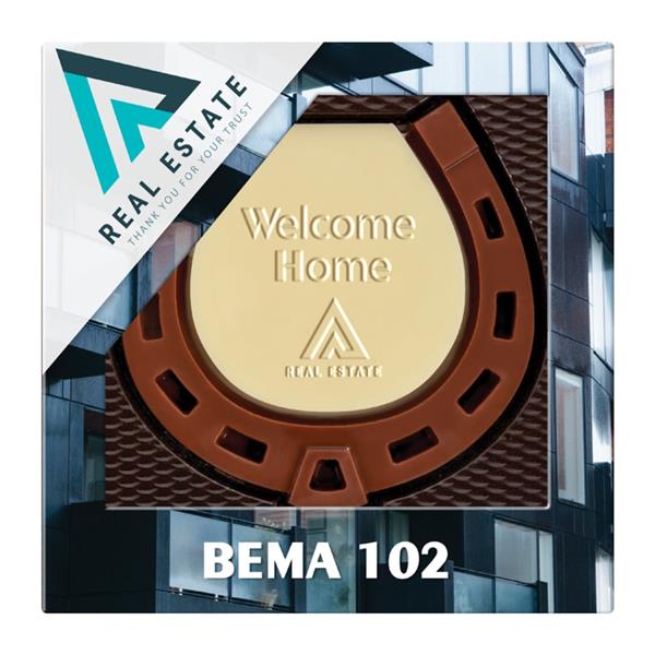 Czekolada kształtowa, umieszczona w wyprasce z R-PET (czyli PET pochodzący w 80% z recyklingu) zamknięta jest w opakowaniu z papieru z certyfikatem FSC (do wyboru kolor: biały, kraft lub ecru -papier z dodatkiem włókien trawy). Pudełko z okienkiem pozwala pięknie wyeksponować czekoladę.