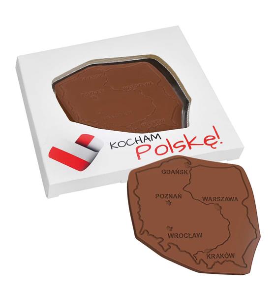 Czekolada kształtowa, umieszczona w wyprasce z R-PET (czyli PET pochodzący w 80% z recyklingu) zamknięta jest w opakowaniu z papieru z certyfikatem FSC (do wyboru kolor: biały, kraft lub ecru -papier z dodatkiem włókien trawy). Pudełko z okienkiem pozwala pięknie wyeksponować czekoladę.