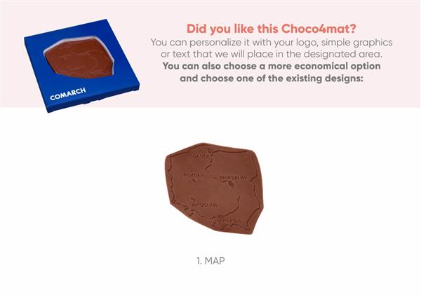 Choco4Mat to wiele opcji personalizacji – możesz nie tylko wybrać kształt czekolady, ale także jej kuwerturę czyli smak (oferujemy aż 10 do wyboru), wyeksponować logo bezpośrednio na produkcie oraz spersonalizować grafikę opakowania. Dzięki temu stworzysz niepowtarzalny słodki gadżet reklamowy jakości premium, dopasowany do marki, branży oraz założeń kampanii promocyjnej.