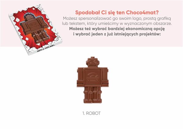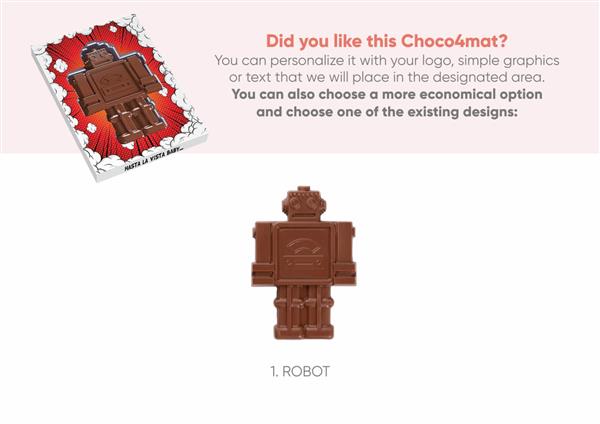 Kreatywne, świeże, wyjątkowe – oto Linia Choco4Mat, czyli tabliczki czekolady w wielu zaskakujących kształtach. Posiadamy ponad 32 gotowe formaty do wyboru, które tylko czekają aby spersonalizować je Twoim logo lub grafiką, lecz na Twoje życzenie stworzymy kolejne – zupełnie nowe i niekonwencjonalne kształty.