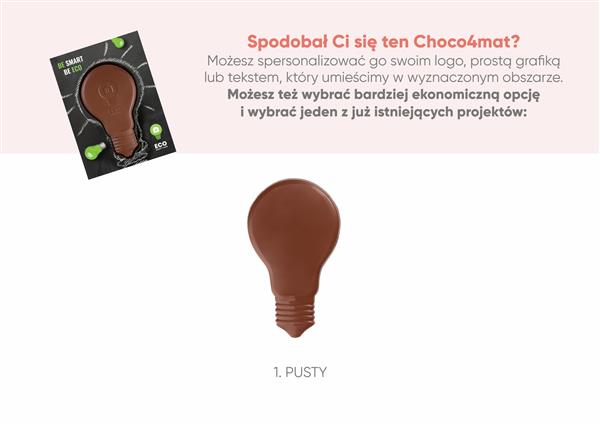 Choco4Mat to wiele opcji personalizacji – możesz nie tylko wybrać kształt czekolady, ale także jej kuwerturę czyli smak (oferujemy aż 10 do wyboru), wyeksponować logo bezpośrednio na produkcie oraz spersonalizować grafikę opakowania. Dzięki temu stworzysz niepowtarzalny słodki gadżet reklamowy jakości premium, dopasowany do marki, branży oraz założeń kampanii promocyjnej.