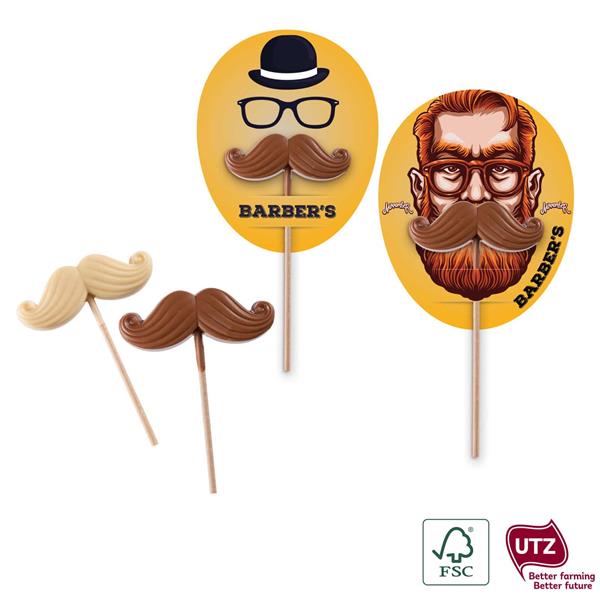 Czekoladowy lizak w kształcie wąsów – zabawna forma i pyszna czekolada w jednym. Przysmak, który wywoła uśmiech u każdego. Wykorzystaj jego słodki potencjał w kampanii reklamowej.