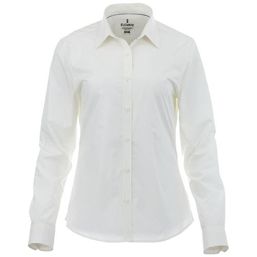 Damska elastyczna koszula z długim rękawem Hamell to idealne połączenie stylu i wygody. Ta tkana koszula wykonana jest z lekkiej tkaniny popelinowej z 97% bawełny i 3% elastanu. Tkanina popelinowa jest znana z ciasnego splotu, który zapewnia wyjątkową trwałość, zachowując jednocześnie miękką i gładką teksturę na skórze. Oznacza to, że koszulka Hamell jest nie tylko wygodna w noszeniu, ale także odporna na codzienne zużycie, zapewniając długotrwałe użytkowanie. Dodatkowa rozciągliwość zapewnia najwyższą swobodę ruchów, zapewniając optymalny komfort przez cały dzień. Ukryty kołnierzyk zapinany na guziki dodaje wyrafinowania, zachowując jednocześnie czysty wygląd. Koszula ma dopasowany krój zapewniający kobiecy wygląd.