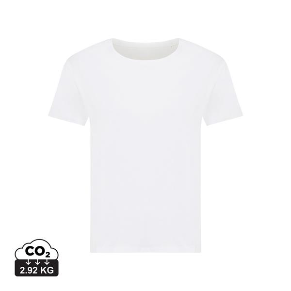 Koszulka damska, regularny krój, okrągły dekolt, krótkie rękawy, wykonana w 30% z bawełny z recyklingu i w 70% z bawełny organicznej o gramaturze 160 g/m2, posiada wbudowany znacznik AWARE™, który potwierdza wykorzystanie materiałów z recyklingu, posiada kod QR na metce, który prowadzi do cyfrowego paszportu produktu, 2% wpływów z każdego sprzedanego produktu z kolekcji Impact jest przekazywane na rzecz Water.org, ślad węglowy produktu: 2,92 kg CO2