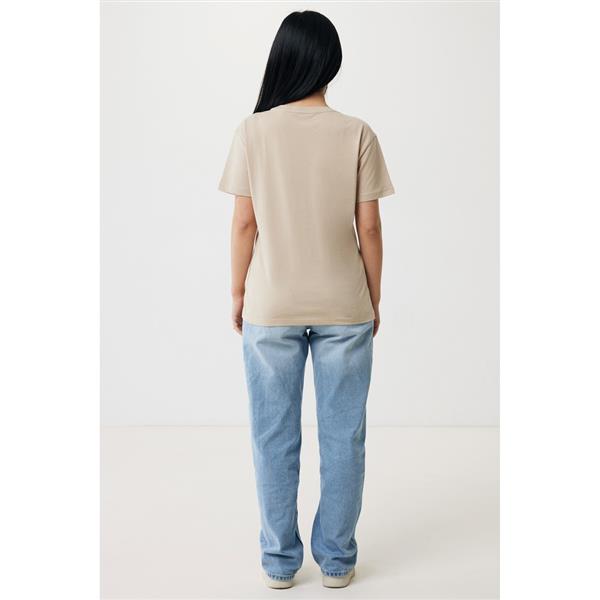 Koszulka damska, regularny krój, okrągły dekolt, krótkie rękawy, wykonana w 30% z bawełny z recyklingu i w 70% z bawełny organicznej o gramaturze 160 g/m2, posiada wbudowany znacznik AWARE™, który potwierdza wykorzystanie materiałów z recyklingu, posiada kod QR na metce, który prowadzi do cyfrowego paszportu produktu, 2% wpływów z każdego sprzedanego produktu z kolekcji Impact jest przekazywane na rzecz Water.org, ślad węglowy produktu: 3,23 kg CO2