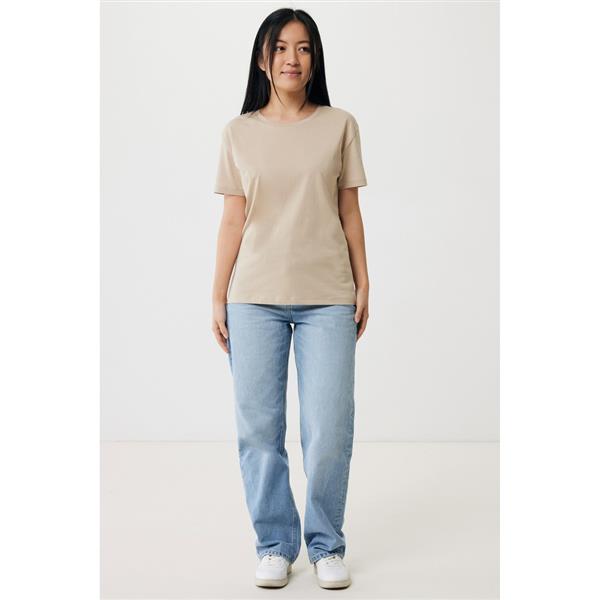 Koszulka damska, regularny krój, okrągły dekolt, krótkie rękawy, wykonana w 30% z bawełny z recyklingu i w 70% z bawełny organicznej o gramaturze 160 g/m2, posiada wbudowany znacznik AWARE™, który potwierdza wykorzystanie materiałów z recyklingu, posiada kod QR na metce, który prowadzi do cyfrowego paszportu produktu, 2% wpływów z każdego sprzedanego produktu z kolekcji Impact jest przekazywane na rzecz Water.org, ślad węglowy produktu: 3,23 kg CO2