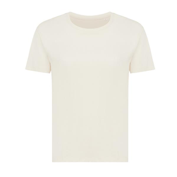 Koszulka damska, regularny krój, okrągły dekolt, krótkie rękawy, wykonana w 30% z bawełny z recyklingu i w 70% z bawełny organicznej o gramaturze 160 g/m2, posiada wbudowany znacznik AWARE™, który potwierdza wykorzystanie materiałów z recyklingu, posiada kod QR na metce, który prowadzi do cyfrowego paszportu produktu, 2% wpływów z każdego sprzedanego produktu z kolekcji Impact jest przekazywane na rzecz Water.org, ślad węglowy produktu: 2,85 kg CO2