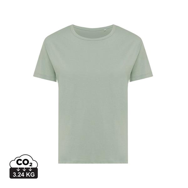 Koszulka damska, regularny krój, okrągły dekolt, krótkie rękawy, wykonana w 30% z bawełny z recyklingu i w 70% z bawełny organicznej o gramaturze 160 g/m2, posiada wbudowany znacznik AWARE™, który potwierdza wykorzystanie materiałów z recyklingu, posiada kod QR na metce, który prowadzi do cyfrowego paszportu produktu, 2% wpływów z każdego sprzedanego produktu z kolekcji Impact jest przekazywane na rzecz Water.org, ślad węglowy produktu: 3,24 kg CO2