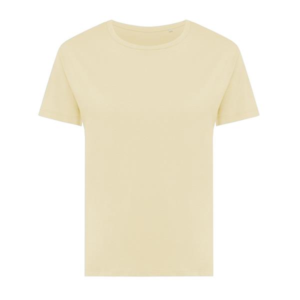 Koszulka damska, regularny krój, okrągły dekolt, krótkie rękawy, wykonana w 30% z bawełny z recyklingu i w 70% z bawełny organicznej o gramaturze 160 g/m2, posiada wbudowany znacznik AWARE™, który potwierdza wykorzystanie materiałów z recyklingu, posiada kod QR na metce, który prowadzi do cyfrowego paszportu produktu, 2% wpływów z każdego sprzedanego produktu z kolekcji Impact jest przekazywane na rzecz Water.org, ślad węglowy produktu: 3,19 kg CO2