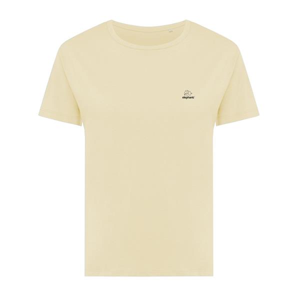 Koszulka damska, regularny krój, okrągły dekolt, krótkie rękawy, wykonana w 30% z bawełny z recyklingu i w 70% z bawełny organicznej o gramaturze 160 g/m2, posiada wbudowany znacznik AWARE™, który potwierdza wykorzystanie materiałów z recyklingu, posiada kod QR na metce, który prowadzi do cyfrowego paszportu produktu, 2% wpływów z każdego sprzedanego produktu z kolekcji Impact jest przekazywane na rzecz Water.org, ślad węglowy produktu: 3,19 kg CO2