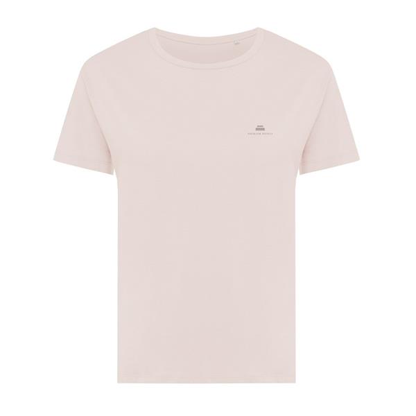 Koszulka damska, regularny krój, okrągły dekolt, krótkie rękawy, wykonana w 30% z bawełny z recyklingu i w 70% z bawełny organicznej o gramaturze 160 g/m2, posiada wbudowany znacznik AWARE™, który potwierdza wykorzystanie materiałów z recyklingu, posiada kod QR na metce, który prowadzi do cyfrowego paszportu produktu, 2% wpływów z każdego sprzedanego produktu z kolekcji Impact jest przekazywane na rzecz Water.org, ślad węglowy produktu: 3,19 kg CO2