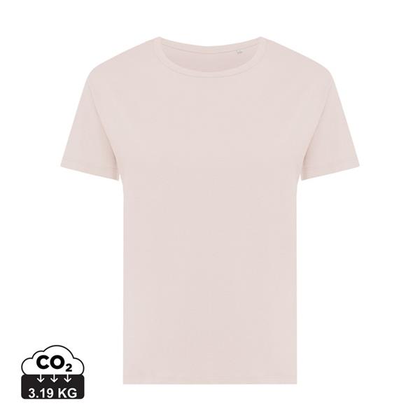 Koszulka damska, regularny krój, okrągły dekolt, krótkie rękawy, wykonana w 30% z bawełny z recyklingu i w 70% z bawełny organicznej o gramaturze 160 g/m2, posiada wbudowany znacznik AWARE™, który potwierdza wykorzystanie materiałów z recyklingu, posiada kod QR na metce, który prowadzi do cyfrowego paszportu produktu, 2% wpływów z każdego sprzedanego produktu z kolekcji Impact jest przekazywane na rzecz Water.org, ślad węglowy produktu: 3,19 kg CO2