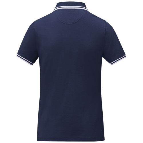 Damska koszulka polo z krótkim rękawem Amarago to przykład ponadczasowego stylu i współczesnej elegancji. Wykonane z wysokiej jakości bawełnianej dzianiny piqué o gramaturze 200 g/m2, oferuje wyjątkowy komfort i trwałość. Unikalne wykończenie kołnierzyka i mankietów oraz kontrastujące kolory tworzą stylową i nowoczesną estetykę, dzięki czemu jest to doskonały wybór na każdą okazję. Koszulka polo ma dopasowany krój zapewniający kobiecy wygląd.