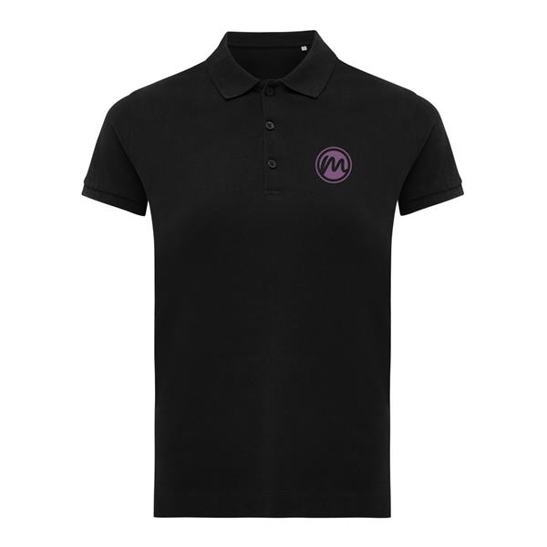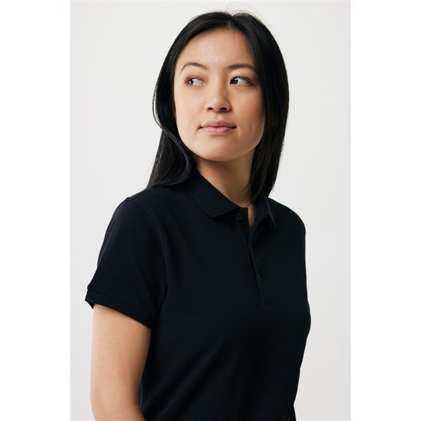 Koszulka polo, damska, zapięcie na 3 guziki, krój medium, splot Pique, krótkie rękawy, wykonana w 50% z bawełny z recyklingu i w 50% z bawełny organicznej o gramaturze 220 g/m2, bez dodatku poliestru, posiada wbudowany znacznik AWARE™, który potwierdza wykorzystanie materiałów z recyklingu, posiada kod QR na metce, który prowadzi do cyfrowego paszportu produktu, 2% wpływów z każdego sprzedanego produktu jest przekazywane na rzecz Water.org