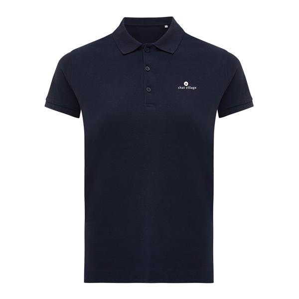 Koszulka polo, damska, zapięcie na 3 guziki, krój medium, splot Pique, krótkie rękawy, wykonana w 50% z bawełny z recyklingu i w 50% z bawełny organicznej o gramaturze 220 g/m2, bez dodatku poliestru, posiada wbudowany znacznik AWARE™, który potwierdza wykorzystanie materiałów z recyklingu, posiada kod QR na metce, który prowadzi do cyfrowego paszportu produktu, 2% wpływów z każdego sprzedanego produktu jest przekazywane na rzecz Water.org
