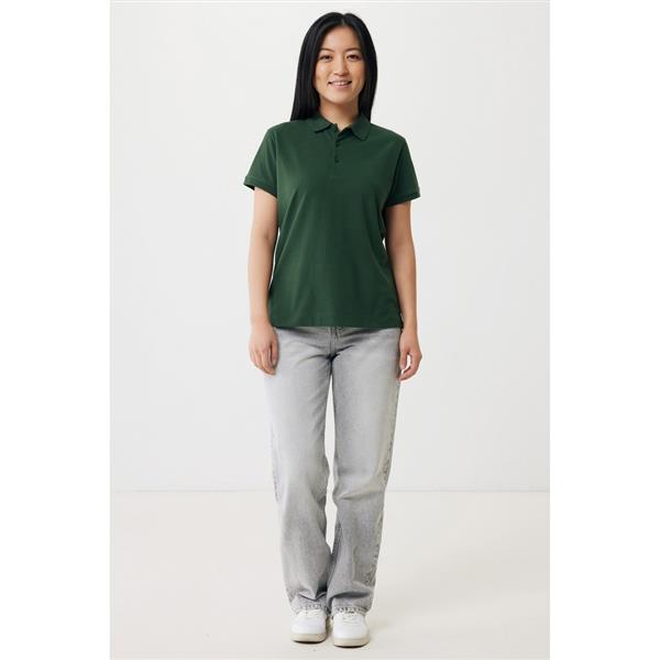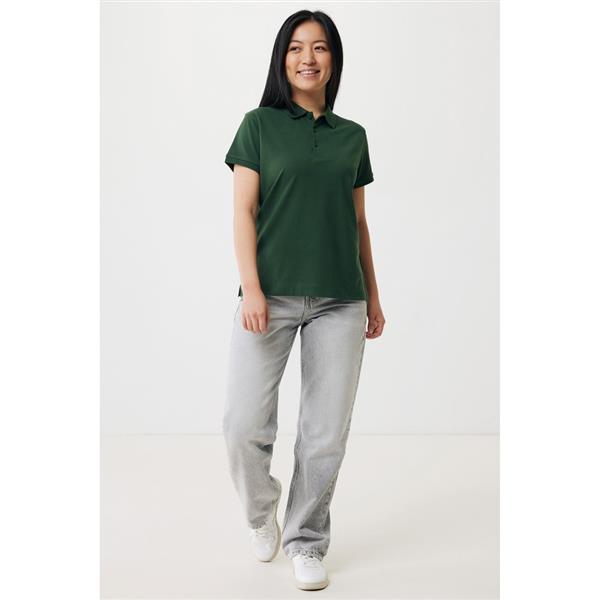 Koszulka polo, damska, zapięcie na 3 guziki, krój medium, splot Pique, krótkie rękawy, wykonana w 50% z bawełny z recyklingu i w 50% z bawełny organicznej o gramaturze 220 g/m2, bez dodatku poliestru, posiada wbudowany znacznik AWARE™, który potwierdza wykorzystanie materiałów z recyklingu, posiada kod QR na metce, który prowadzi do cyfrowego paszportu produktu, 2% wpływów z każdego sprzedanego produktu jest przekazywane na rzecz Water.org