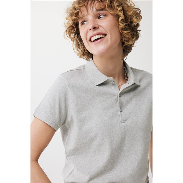 Koszulka polo, damska, zapięcie na 3 guziki, krój medium, splot Pique, krótkie rękawy, wykonana w 50% z bawełny z recyklingu i w 50% z bawełny organicznej o gramaturze 220 g/m2, bez dodatku poliestru, posiada wbudowany znacznik AWARE™, który potwierdza wykorzystanie materiałów z recyklingu, posiada kod QR na metce, który prowadzi do cyfrowego paszportu produktu, 2% wpływów z każdego sprzedanego produktu jest przekazywane na rzecz Water.org