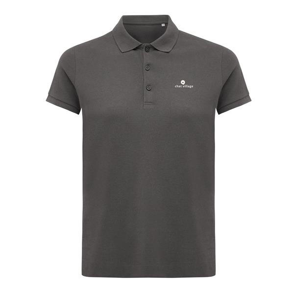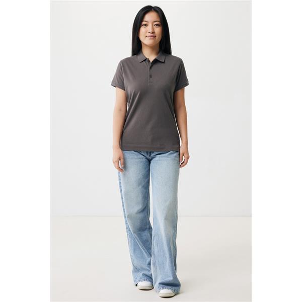 Koszulka polo, damska, zapięcie na 3 guziki, krój medium, splot Pique, krótkie rękawy, wykonana w 50% z bawełny z recyklingu i w 50% z bawełny organicznej o gramaturze 220 g/m2, bez dodatku poliestru, posiada wbudowany znacznik AWARE™, który potwierdza wykorzystanie materiałów z recyklingu, posiada kod QR na metce, który prowadzi do cyfrowego paszportu produktu, 2% wpływów z każdego sprzedanego produktu jest przekazywane na rzecz Water.org