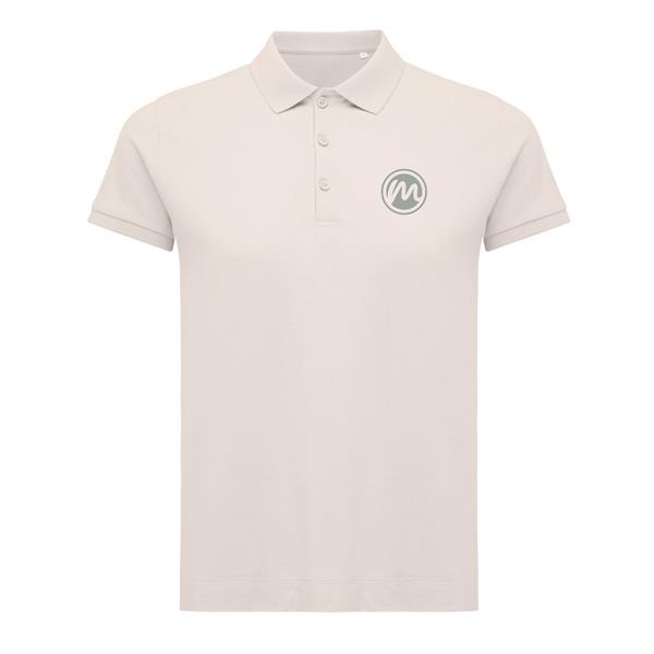Koszulka polo, damska, zapięcie na 3 guziki, krój medium, splot Pique, krótkie rękawy, wykonana w 50% z bawełny z recyklingu i w 50% z bawełny organicznej o gramaturze 220 g/m2, bez dodatku poliestru, posiada wbudowany znacznik AWARE™, który potwierdza wykorzystanie materiałów z recyklingu, posiada kod QR na metce, który prowadzi do cyfrowego paszportu produktu, 2% wpływów z każdego sprzedanego produktu jest przekazywane na rzecz Water.org