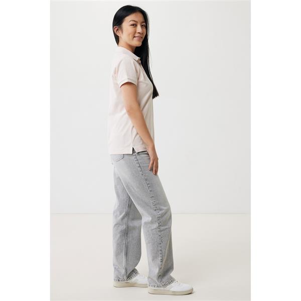 Koszulka polo, damska, zapięcie na 3 guziki, krój medium, splot Pique, krótkie rękawy, wykonana w 50% z bawełny z recyklingu i w 50% z bawełny organicznej o gramaturze 220 g/m2, bez dodatku poliestru, posiada wbudowany znacznik AWARE™, który potwierdza wykorzystanie materiałów z recyklingu, posiada kod QR na metce, który prowadzi do cyfrowego paszportu produktu, 2% wpływów z każdego sprzedanego produktu jest przekazywane na rzecz Water.org