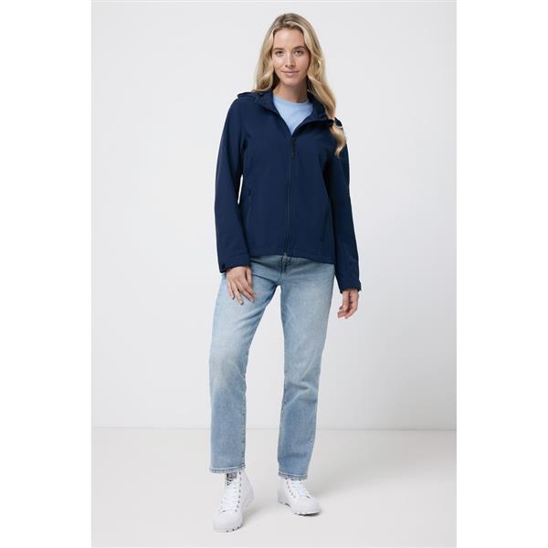 Damska kurtka softshell, wykonana z poliestru z recyklingu, 3 warstwowy materiał o gramaturze 300 g/m2, miękki polar wewnątrz, zapięcia mankietów na rzep, kaptur z regulacją, 2 kieszenie zamykane na zamek, wodoodporna dzięki zastosowanej technologii BIONIC-FINISH® ECO, wiatroszczelna i oddychająca konstrukcja, posiada certyfikat OEKO-TEX® STANDARD 100, posiada znacznik AWARE™, który gwarantuje, że wykorzystane materiały pochodzą z recyklingu, 2% wpływów z każdego sprzedanego produktu z kolekcji Impact jest przekazywane na rzecz Water.org, ślad węglowy produktu: 16,01 kg CO2