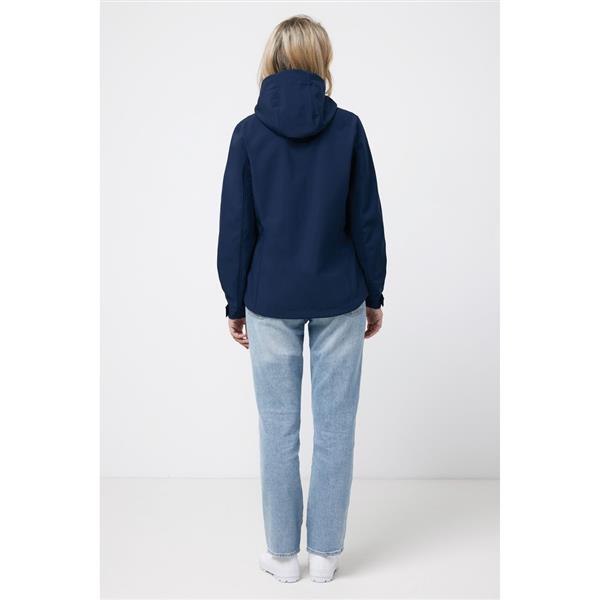 Damska kurtka softshell, wykonana z poliestru z recyklingu, 3 warstwowy materiał o gramaturze 300 g/m2, miękki polar wewnątrz, zapięcia mankietów na rzep, kaptur z regulacją, 2 kieszenie zamykane na zamek, wodoodporna dzięki zastosowanej technologii BIONIC-FINISH® ECO, wiatroszczelna i oddychająca konstrukcja, posiada certyfikat OEKO-TEX® STANDARD 100, posiada znacznik AWARE™, który gwarantuje, że wykorzystane materiały pochodzą z recyklingu, 2% wpływów z każdego sprzedanego produktu z kolekcji Impact jest przekazywane na rzecz Water.org, ślad węglowy produktu: 16,01 kg CO2