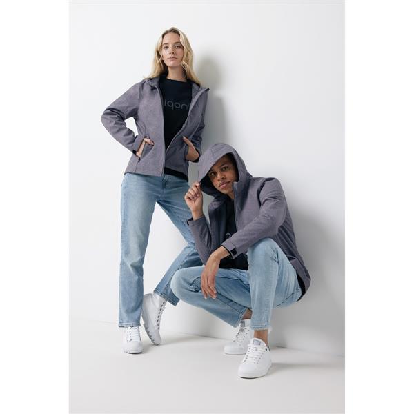 Damska kurtka softshell, wykonana z poliestru z recyklingu, 3 warstwowy materiał o gramaturze 300 g/m2, miękki polar wewnątrz, zapięcia mankietów na rzep, kaptur z regulacją, 2 kieszenie zamykane na zamek, wodoodporna dzięki zastosowanej technologii BIONIC-FINISH® ECO, wiatroszczelna i oddychająca konstrukcja, posiada certyfikat OEKO-TEX® STANDARD 100, posiada znacznik AWARE™, który gwarantuje, że wykorzystane materiały pochodzą z recyklingu, 2% wpływów z każdego sprzedanego produktu z kolekcji Impact jest przekazywane na rzecz Water.org, ślad węglowy produktu: 16,07 kg CO2