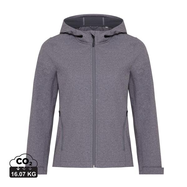 Damska kurtka softshell, wykonana z poliestru z recyklingu, 3 warstwowy materiał o gramaturze 300 g/m2, miękki polar wewnątrz, zapięcia mankietów na rzep, kaptur z regulacją, 2 kieszenie zamykane na zamek, wodoodporna dzięki zastosowanej technologii BIONIC-FINISH® ECO, wiatroszczelna i oddychająca konstrukcja, posiada certyfikat OEKO-TEX® STANDARD 100, posiada znacznik AWARE™, który gwarantuje, że wykorzystane materiały pochodzą z recyklingu, 2% wpływów z każdego sprzedanego produktu z kolekcji Impact jest przekazywane na rzecz Water.org, ślad węglowy produktu: 16,07 kg CO2