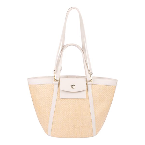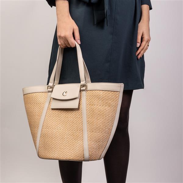 Słomkowa torba damska Alesia to idealna propozcja na lato. Posiada rączki oraz długi pasek do zakładania na ramię oraz bawełnianą podszewkę, wykończenia są wykonane ze skóry ekologicznej Rozmiar: 460 x 175 x 300 mm ET(Z) (zawieszka do 20 cm2): 6 x 3 Kolor: Beżowy