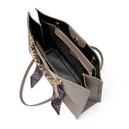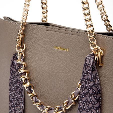 Torebka Cacharel `Amelia` bez wysiłku przechodzi z biura na wieczór, oferując idealne połączenie praktyczności i stylu. Dzięki dużej objętości torba ta zapewnia dużą pojemność na codzienne niezbędne rzeczy. Piękna matowa ziarnista faktura dodaje jej wyrafinowania. Wykonana z wegańskiej skóry, Amelia posiada przemyślane detale, w tym podwójny uchwyt do wszechstronnych opcji noszenia – w ręku lub na ramieniu. Unikalny akcent dodaje mały ozdobny nadrukowany szalik z niestandardowym wzorem monogramu Cacharel `C`. Oferowana w eleganckiej neutralnej palecie kolorów Black i Taupe, Amelia jest wyrafinowanym towarzyszem, który uzupełnia dynamiczny styl życia
