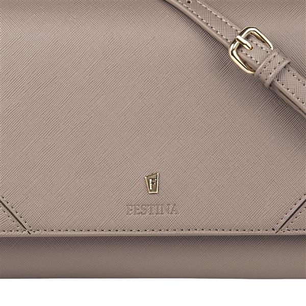 Sławna linia `Mademoiselle` Festiny jest uzupełniona w tym sezonie o nową ofertę torebek damskich. Ta torebka crossbody wykonana jest z pięknie teksturowanej skóry wegańskiej saffiano (PU). Każdy detal jest delikatnie wykonany, tak jak ikoniczna złota płytka z podpisem F, obecna w całej kolekcji i podkreślona pięknie wytłoczonym logo FESTINA. Pięknie zaprojektowane, posiadają kolorowe, kontrastowe i wysoce praktyczne wnętrza, królewskie, ale kompaktowe z zapinaną na zamek przegrodą, aby zorganizować wszystkie Twoje niezbędne rzeczy. Ta beżowa wersja ma kontrastowe wnętrze w kolorze off-white. Pasek ma regulowaną długość.