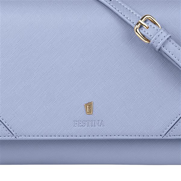 Sławna linia `Mademoiselle` Festiny jest uzupełniona w tym sezonie o nową ofertę torebek damskich. Ta torebka crossbody wykonana jest z pięknie teksturowanej skóry wegańskiej saffiano (PU). Każdy detal jest delikatnie wykonany, tak jak ikoniczna złota płytka z podpisem F, obecna w całej kolekcji i podkreślona pięknie wytłoczonym logo FESTINA. Pięknie zaprojektowane, posiadają kolorowe, kontrastowe i bardzo praktyczne wnętrza, królewskie, a jednocześnie kompaktowe z zapinaną na zamek komorą, w której można zorganizować wszystkie niezbędne rzeczy. Ta jasnoniebieska wersja ma kontrastowe, granatowe wnętrze. Pasek ma regulowaną długość.