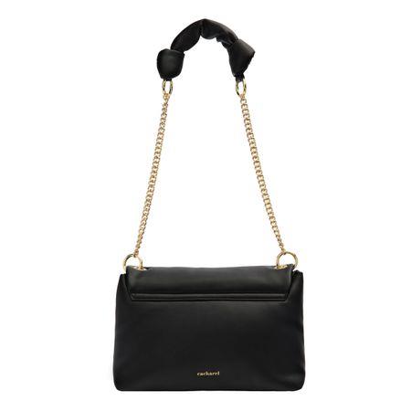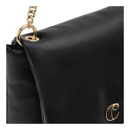 Torba `Vivienne` w kolorze czarnym to idealne połączenie miękkości i uroku, wykonane z wysokiej jakości, miękkiej, matowej skóry wegańskiej (PU) z efektem wyściełania, który podkreśla jej wyrafinowaną sylwetkę. Złote akcenty wnoszą ciepło i luksus do projektu, a złota tabliczka z logo `C` z czarnym wykończeniem ABS płynnie pasuje do korpusu torby, zapewniając dopracowany i spójny wygląd. Ta wersja posiada charakterystyczny pasek z elegancką kokardą i łańcuszkiem, oferując zabawny, ale wyrafinowany element. Subtelne logo Cacharel dopełnia jej ponadczasowy urok, a przestronne wnętrze sprawia, że idealnie nadaje się do codziennego użytku, łącząc praktyczność z elegancką estetyką.