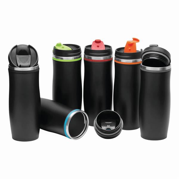 Kubek termiczny o podwójnych ściankach DARK CREMA. Wewnątrz i na zewnątrz stal nierdzewna. Odkręcana plastikowa pokrywa z wbudowanym, składanym otworem do picia, kolorowy gumowy pierścień wokół otworu i gumowany spód dla lepszej przyczepności, pojemność ok. 400 ml. Materiał: Stal nierdzewna/Plastik Kolor: czarny Tagi: Kubki/garnki izolowane,bidony/kubki,kubki,filiżanki,przybory kuchenne,artykuły gospodarstwa domowego,kubki/garnki termiczne,akcesoria podróżne,kubki do kawy
