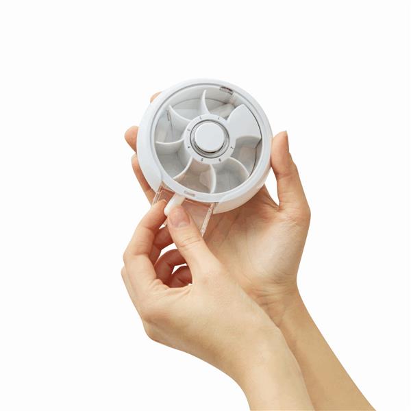 Pudełko na tabletki DAY BY DAY z 7 przedziałkami, obraca się przez naciśnięcie przycisku, przezroczysta szufladka do wyjmowania tabletek.