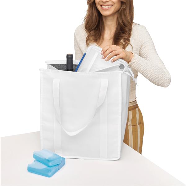 Torba izotermiczna DEGREE w formie torby na zakupy, komora główna z izolacyjnym zamkiem błyskawicznym, 2 uchwyty. Materiał: Polipropylen Kolor: biały Tagi: Torby termoizolacyjne,torby na zakupy,torby na zakupy,artykuły gospodarstwa domowego,akcesoria podróżne,akcesoria outdoorowe,piknikowe