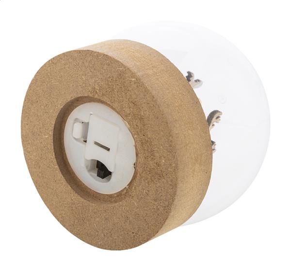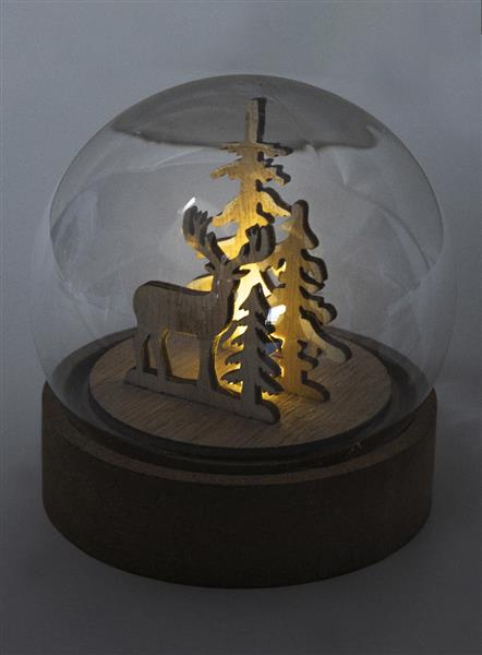 Podświetlana dekoracja świąteczna w kształcie kuli śnieżnej na podstawie z płyty MDF z oświetleniem LED. W zestawie baterie guzikowe. Z przyciskiem WŁ./WYŁ. na podstawie.