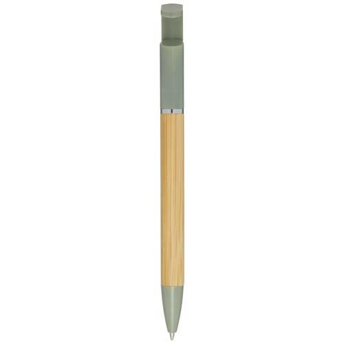 Bambusowy długopis, który pełni także funkcję uchwytu na telefon. Przycisk i środkowy pierścień wykonane są z tworzyw sztucznych pochodzących z recyklingu, końcówka z mosiądzu, a korpus z bambusa pozyskiwanego w sposób zrównoważony. Kolor tuszu: Czarny. Żywotność: 1000 metrów. Rozmiar stalówki: 1,0 mm.