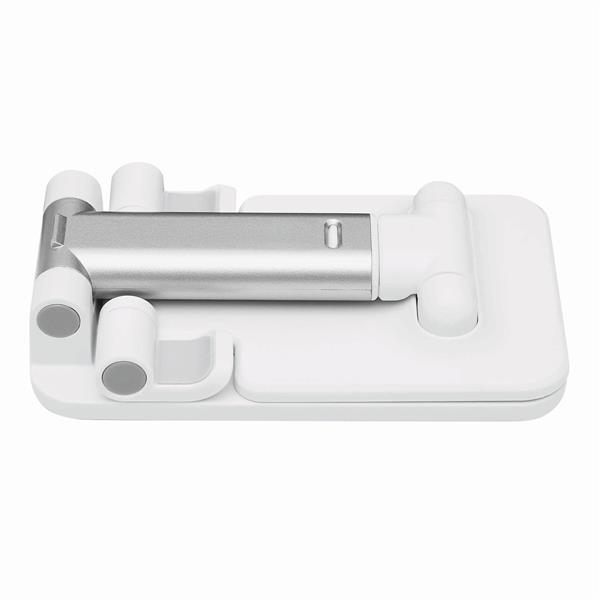 Składany uchwyt na telefon DESK KING: antypoślizgowa podstawka, możliwość regulacji kąta i wysokości, silikonowa podkładka zapewniająca pewne trzymanie telefonu.
