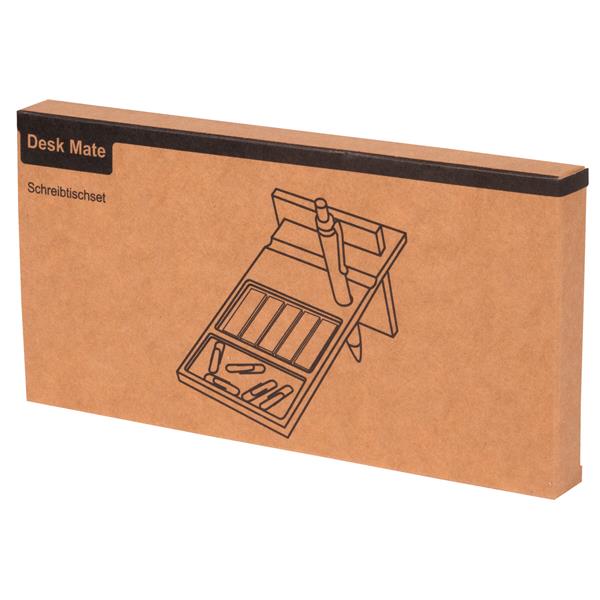 Zestaw na biurko DESK MATE to wygodny organizer z długopisem (czarny tusz), 5 bloczkami samoprzylepnych, kolorowych karteczek, 5 spinaczami i miejscem do bezpiecznego umieszczenia smartfona. Materiał: Bambus/Metal/Plastik Kolor: brązowy Tagi: Akcesoria biurowe,akcesoria do telefonów komórkowych/smartfonów