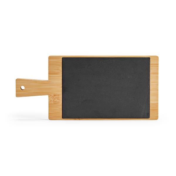 Wykonana z bambusa i łupku tablica o wymiarach 15 x 33 x 2 cm posiada uchwyt i może stać się centralnym punktem spotkań. Zawiera dwa kawałki kredy, dzięki czemu można ją udekorować. Niech ta tablica będzie Twoim towarzyszem, inspirując kulinarne przygody i tworząc wspomnienia na całe życie.