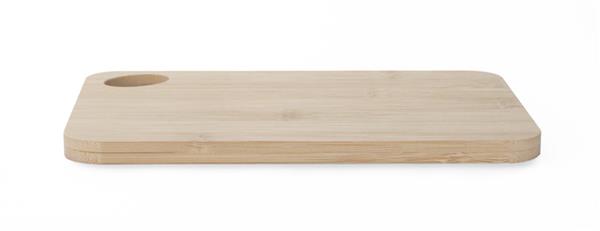 Wysokiej jakości, wygodna deska bambusowa do krojenia warzyw, owoców, pieczywa, wędlin, serów itd. Posiada uchwyt, dzięki któremy możemy ją zawiesić. Elegancki wygląd i praktyczne zastosowanie sprawdzą się w każdej kuchni. Produkt posiada badania dopuszczające do kontaktu z żywnością. Nie zaleca się mycia w zmywarce.